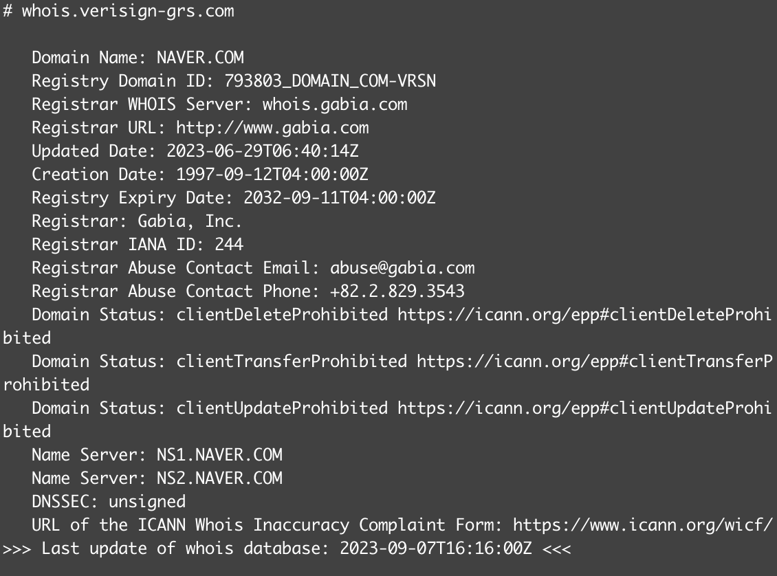 만약 도메인 이름을 찾고 싶다면 terminal에 아래와 같이 입력하면 확인 할 수 있다.